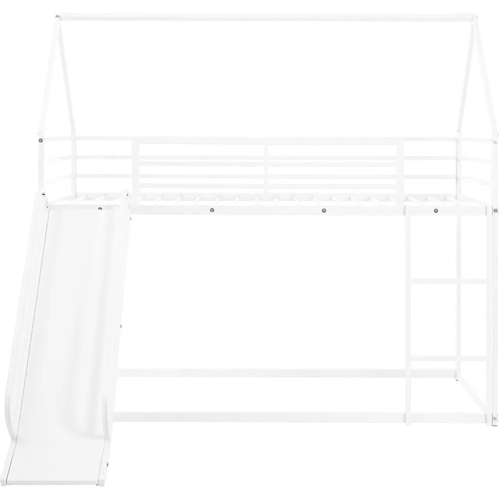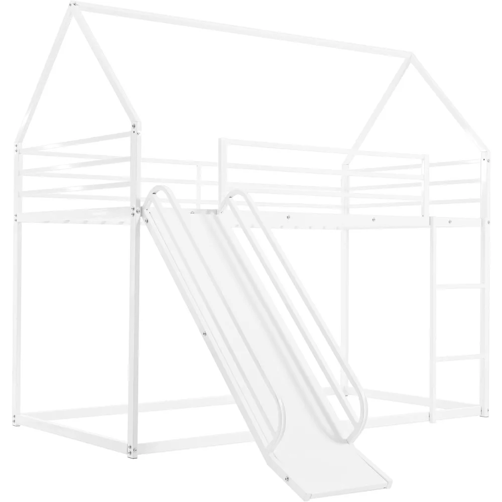 Metal Junior House Twin Size House Bunk Bed Frame with Ladder & Roof for Boy Girl