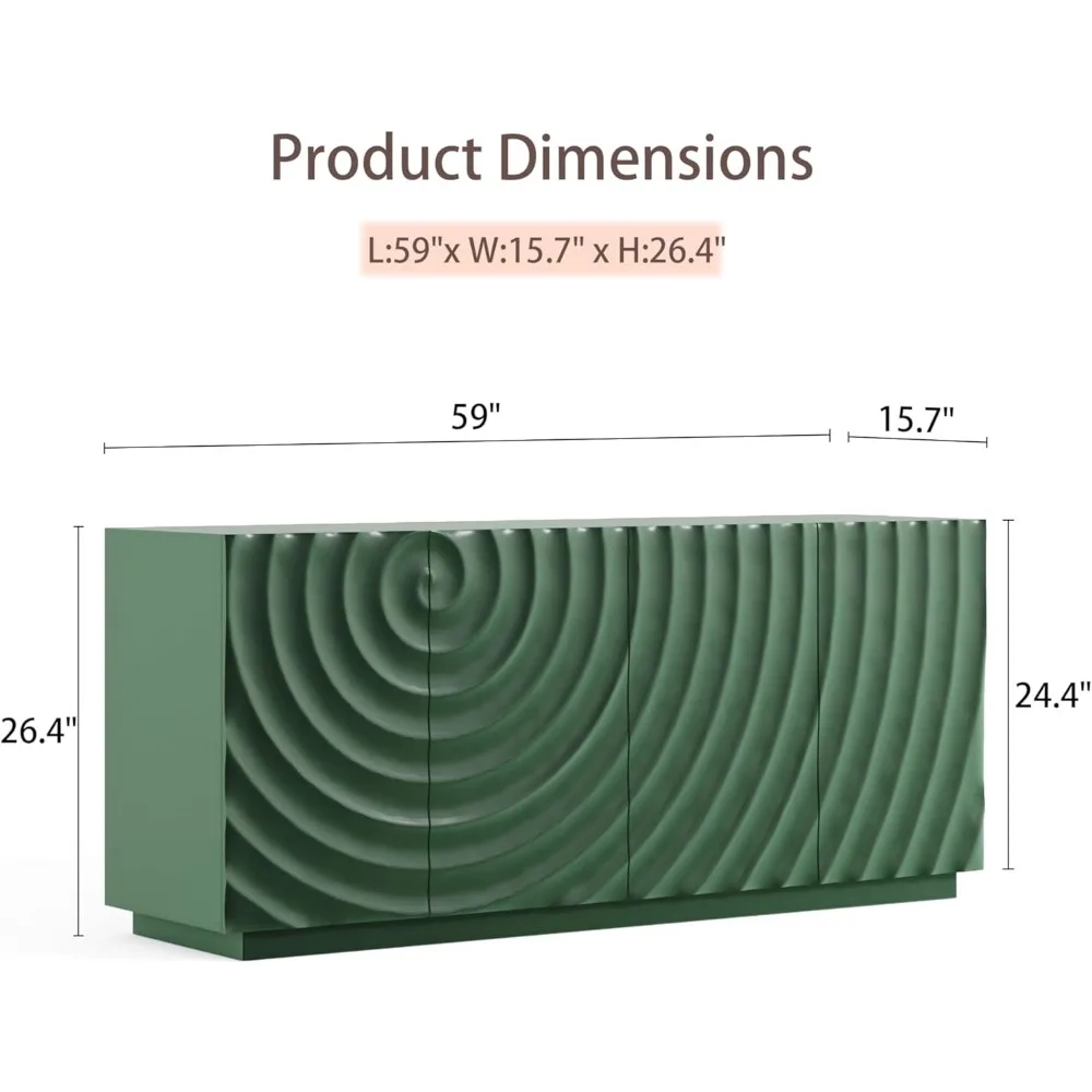 • Elegant & Modern Design – Elevate your home with this stylish sideboard cabinet, featuring a sleek silhouette and unique water ripple design for a touch of sophisticated glamour. Its meticulous detailing makes it a stunning focal point in any modern space.